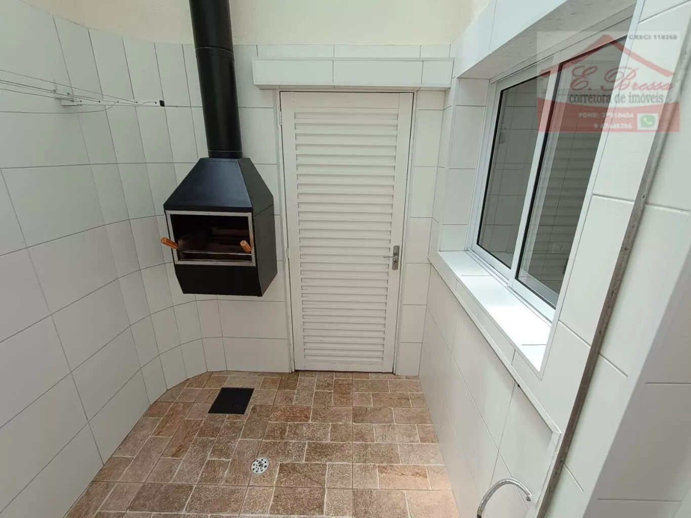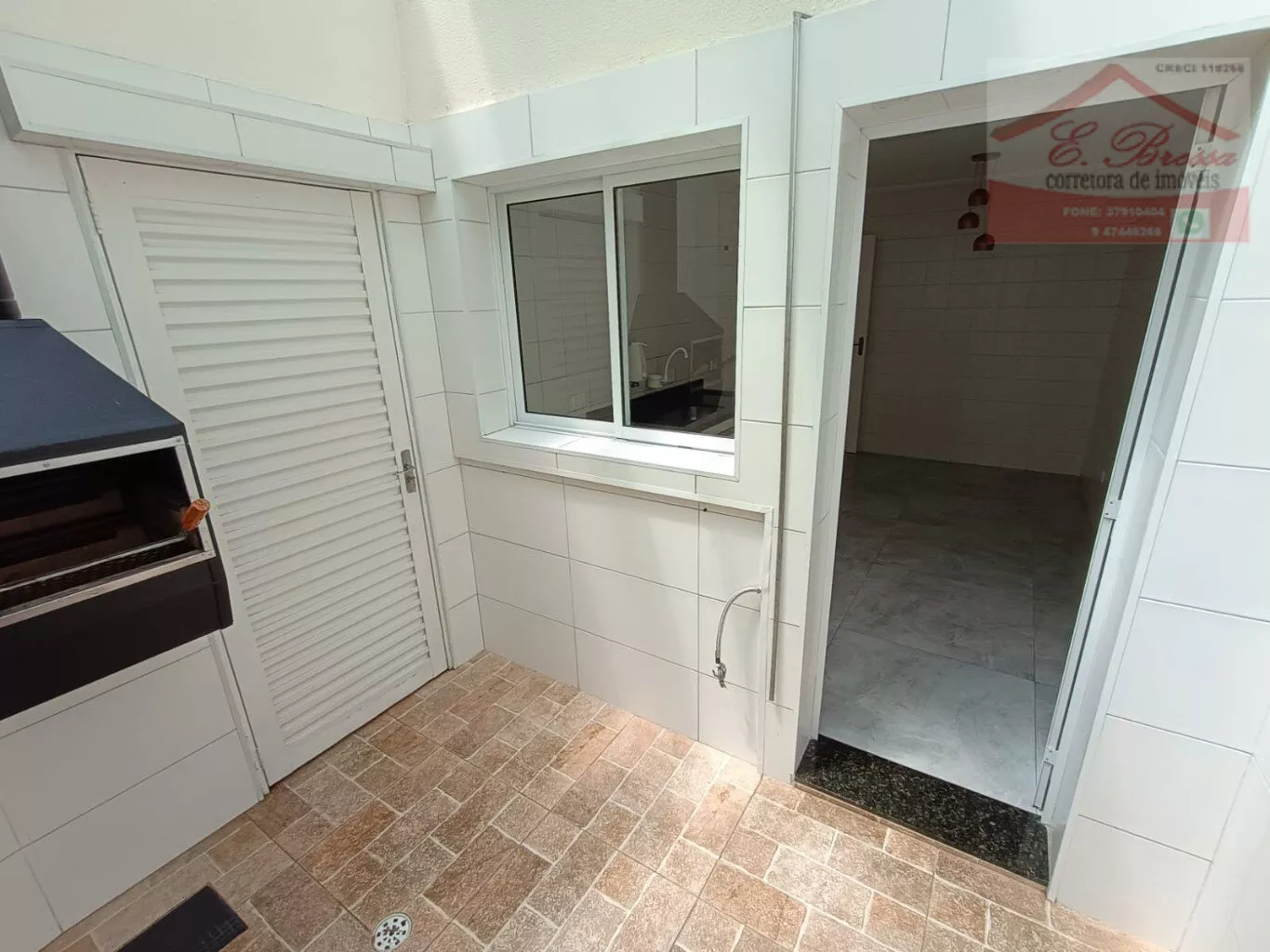 Área externa com churrasqueira e teto retratil, perfeita para confraternizações ou momentos de relaxamento ao ar livre.